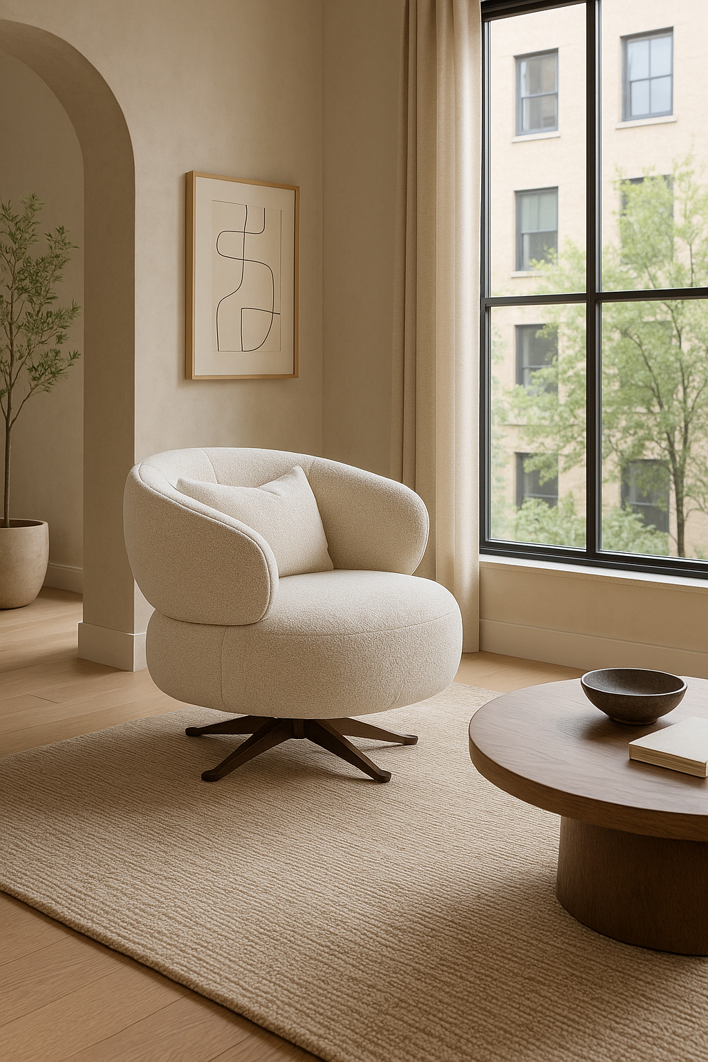 Diseñada para quienes valoran el equilibrio entre estilo y comodidad, la Silla Ipswich ofrece una silueta elegante con detalles suaves y contemporáneos. Su cojín en el respaldar añade un extra de confort ergonómico, mientras que la base giratoria brinda funcionalidad sin renunciar al diseño. Ideal para livings, dormitorios o espacios de lectura que buscan sofisticación sin rigidez.