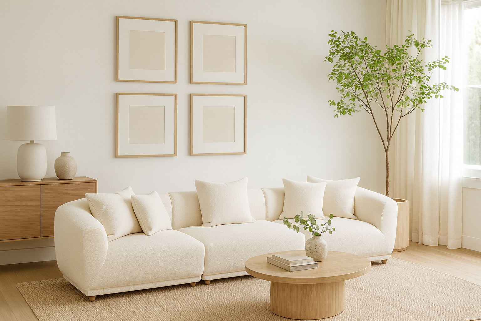 Sofá de tres módulos en tela bouclé. Estructura robusta, asientos amplios de alta densidad y brazos curvos para mayor ergonomía. Su diseño atemporal y acabado texturizado crea un look sofisticado y versátil.
